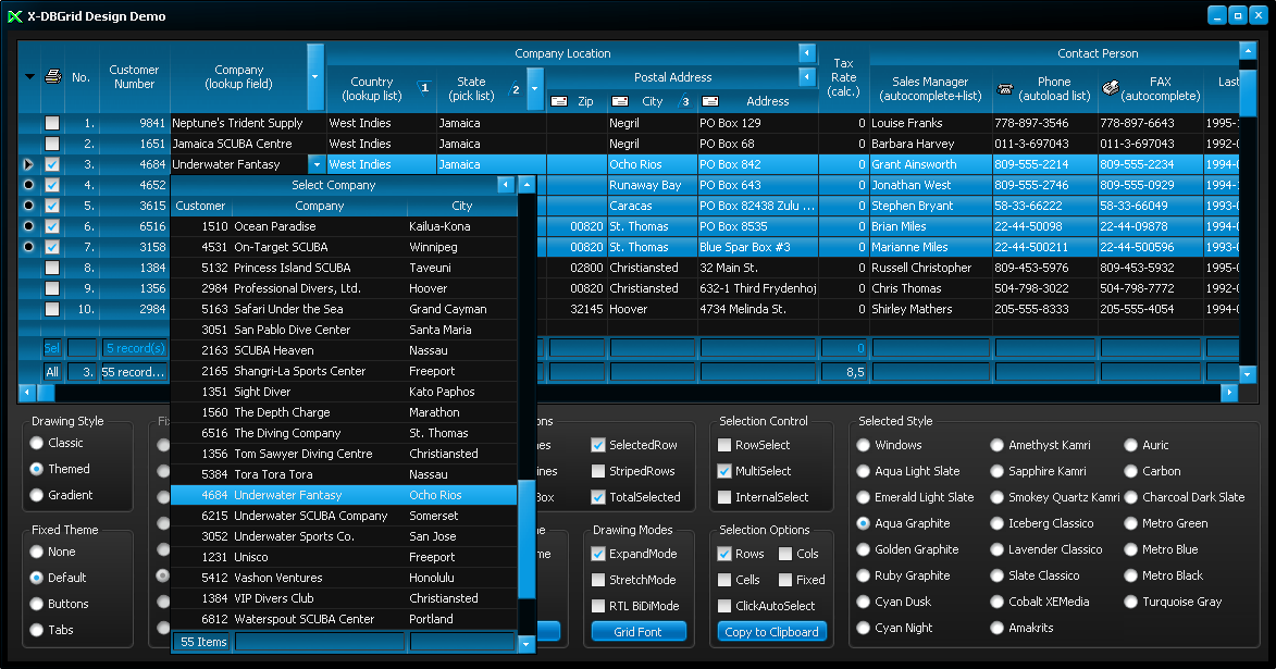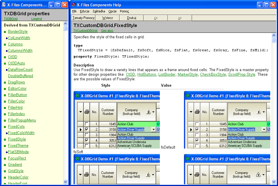Contains all components/classes included in X-DBGrid Component package and the following: